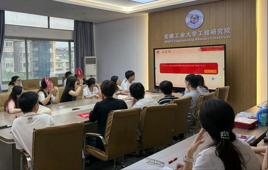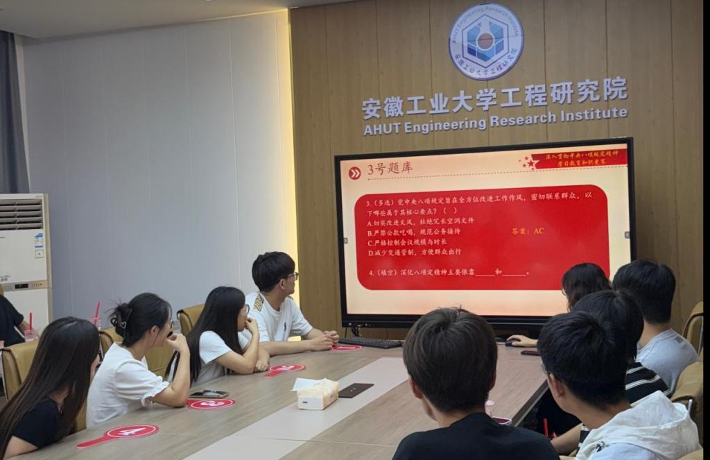 为扎实推进深入贯彻中央八项规定精神学习教育走深走实,7月14日,工程研究院组织开展深入贯彻中央八项规定精神学习教育知识竞赛活动,活动由辅导员徐小曼主持,吸引了众多学生党员、积极分子积极参与。